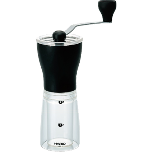 Hario Ceramic Slim manual coffee grinder uses a classic ceramic mill and not knives. The ceramic burrs do not transfer heat and crush the coffee bean compared to a knife mill that breaks the coffee bean. This process provides a more consistent grind that can be easily adjusted for the desired degree of the grind.